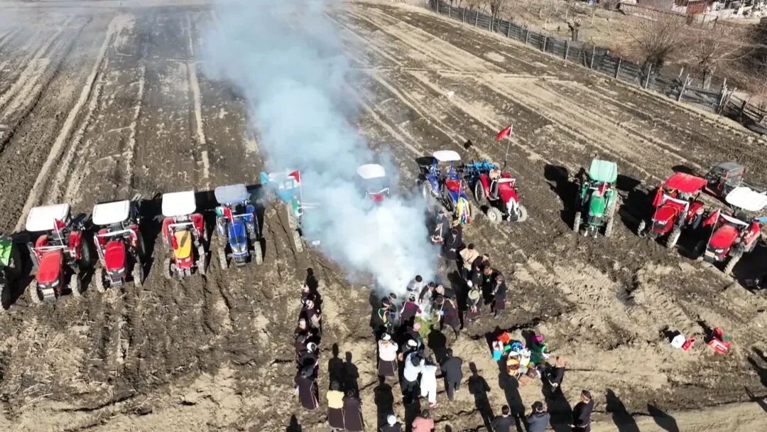 仪式结束后,拖拉机手迅速投入耕作。锃亮的铁犁在农田里翻出一道道整齐的土沟,唤醒了沉睡的土地。妇女们紧随其后,动作娴熟地将油菜种子均匀撒入沟中,把新一季的希望播进沃土。