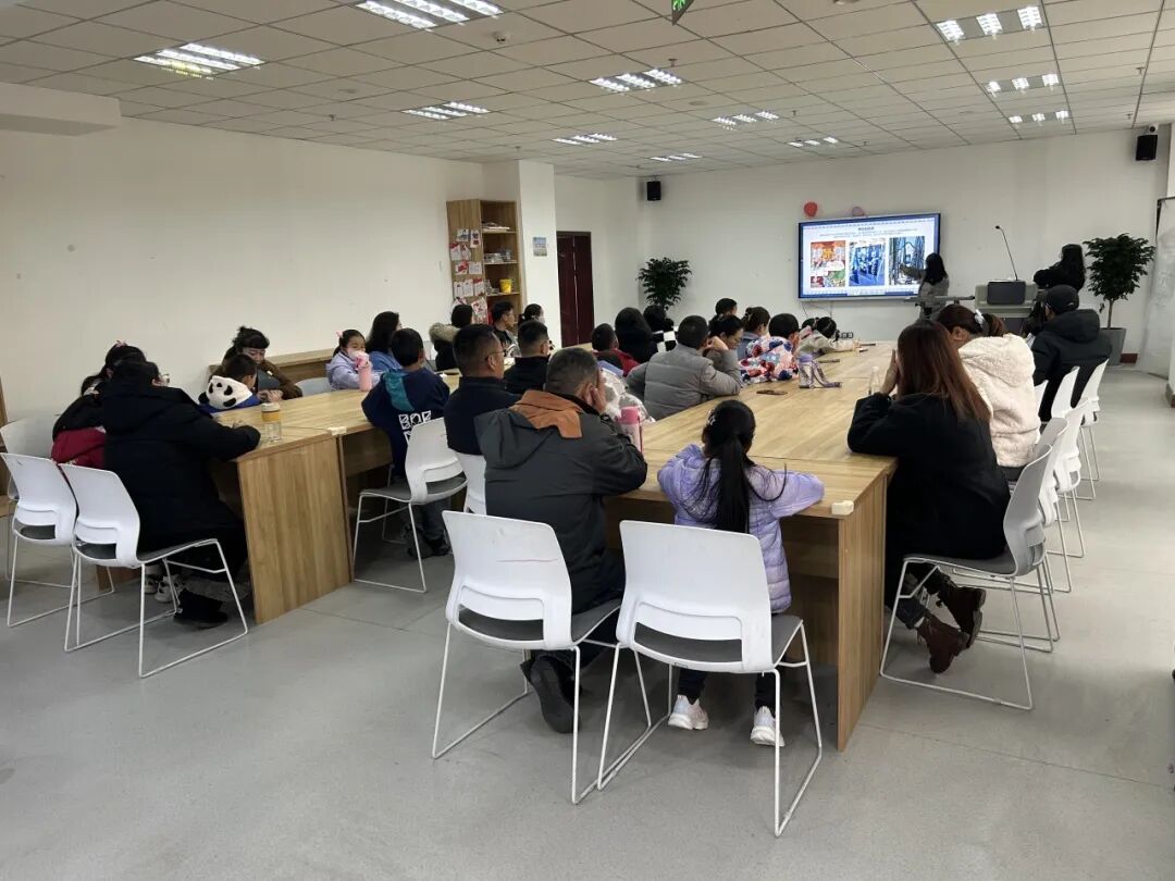 活动伊始,图书馆特邀的专业指导老师通过精心制作的PPT,带领大家开启了一场探寻蜡染艺术的旅程。老师以“品蜡知韵·非遗溯源”为主题,用生动形象的语言讲解了蜡染这门古老技艺源远流长的历史,深入剖析了“蜡封防染”这一核心工艺原理。特别值得一提的是,老师巧妙地将传统蜡染与本次体验活动使用的“油水分离”技法相联系,深入浅出地解释了蓝白纹样背后所蕴含的吉祥寓意与民族审美。孩子们睁大好奇的双眼,家长们也听得津津有味,大家在图文并茂的讲解中,初步感知到了非遗匠人那份专注与坚守的文化底蕴,唤起了对传统手工艺由衷的喜爱之情。