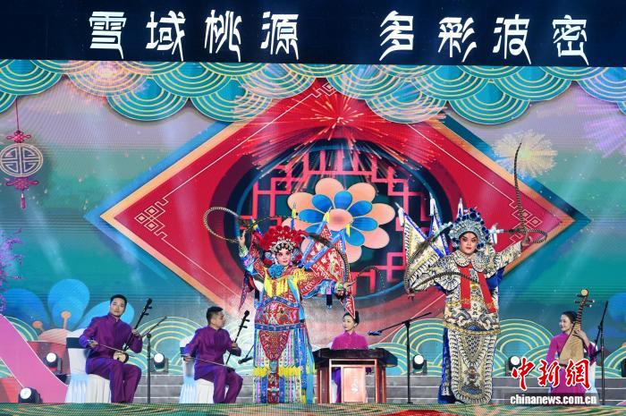 图为西藏林芝第二十三届桃花旅游文化节波密县分会场开幕仪式现场。谢牧摄