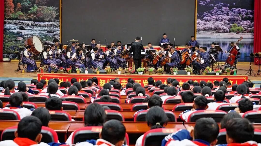 为隆重纪念西藏民主改革67周年,创新推进“颂党恩、颂核心、颂人民”主题教育走深走实,助力第二十三届林芝桃花旅游文化节提质增效,持续深化文化惠民、文旅融合发展,切实让优质文艺资源下沉校园、润泽师生,4月8日,西藏民族乐团“格桑花开·雪域新声”——“三颂”艺术党课惠民演出在米林市中学圆满举办。以文艺演出为抓手,扎实推动文旅服务基层、文化赋能教育的工作实践,将暖心文化服务送到基层师生身边。