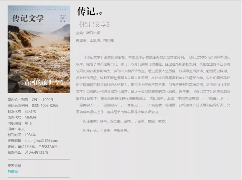 就在之前的三年时间里,《传记文学》连续两年获得中宣部“期刊主题宣传好文章”奖、入选中宣部“新中国成立70周年期刊主题宣传引导资助项目”、连续三年入选“中国精品期刊展”、进入全国中小学图书馆馆配期刊……