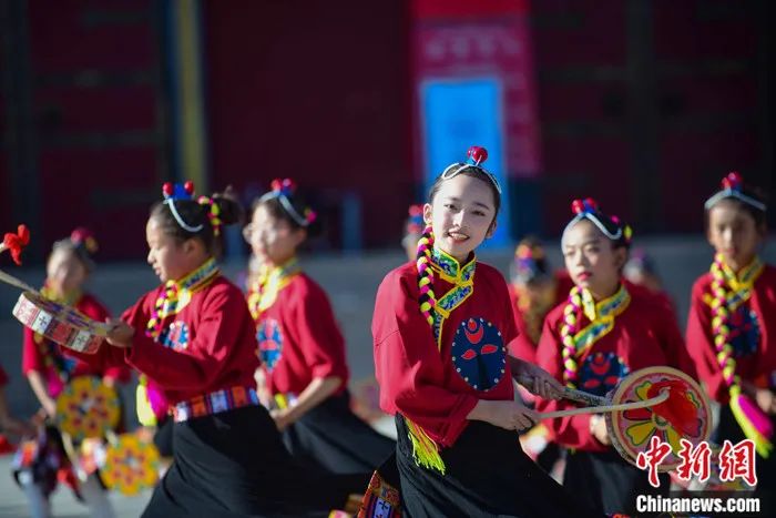 资料图为西藏自治区拉萨市城关区慈觉林数十名孩子练习热巴舞。中新社记者 贡嘎来松 摄