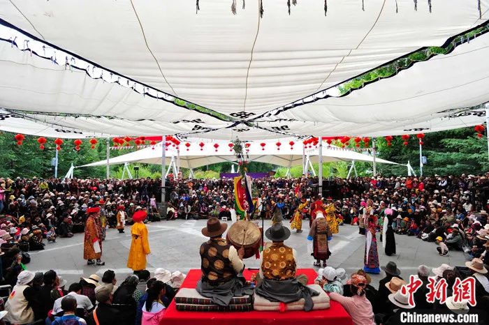 资料图为藏戏《苏吉尼玛》在拉萨市宗角禄康公园上演。中新社记者 贡嘎来松 摄