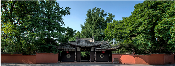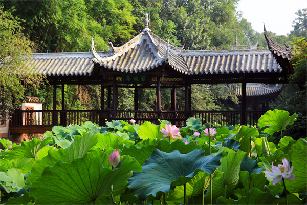 红墙环抱,绿水萦绕。池塘里,夏荷含苞待放,东坡盘陀坐像飘逸洒脱。三苏祠内陈列着“三苏”塑像及苏家遗迹,收藏着上万件有关“三苏”的文物和文献资料,是国内规模最大、保存最完好的“三苏”纪念祠堂,全国重点文物保护单位和国家二级博物馆。行走其中,除各类文物古迹外,古树、古井古韵古色。