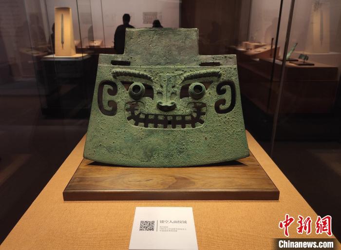 商代晚期的镂空人面纹钺,恰似威严的表情包。 邓霞 摄