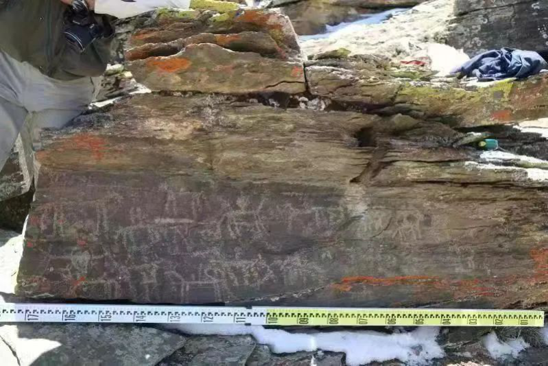 其中昨日,在江孜县境内首次发现早期岩画地点,该岩画处在约海拔5200米的山麓上,分布在8处崖面上,岩画的图像中出现46个骑马人,其中22人持有弓箭,5人有持矛,还有4座早期佛塔和“万字符”1个,表现出狩猎、争斗和信仰等古代生活场景。根据区、市文博和考古领域专家初步推断为唐至元代时期,具体年代有待进一步研究论证。该岩画点是江孜县境内首次发现的岩画遗迹,结束了江孜县境内无岩画遗存的历史,系此次普查中又一次重大发现。它的发现,不仅丰富了年楚河流域古代历史文化的内容,而且对讨论西藏中南部古代社会历史的发展演进具有重要的参考价值。为教育和引导社会公众,增强文化自信,传承发扬江孜千年名城的历史文化底蕴,为铸牢中华民族共同体意识提供了更加多元的佐证。