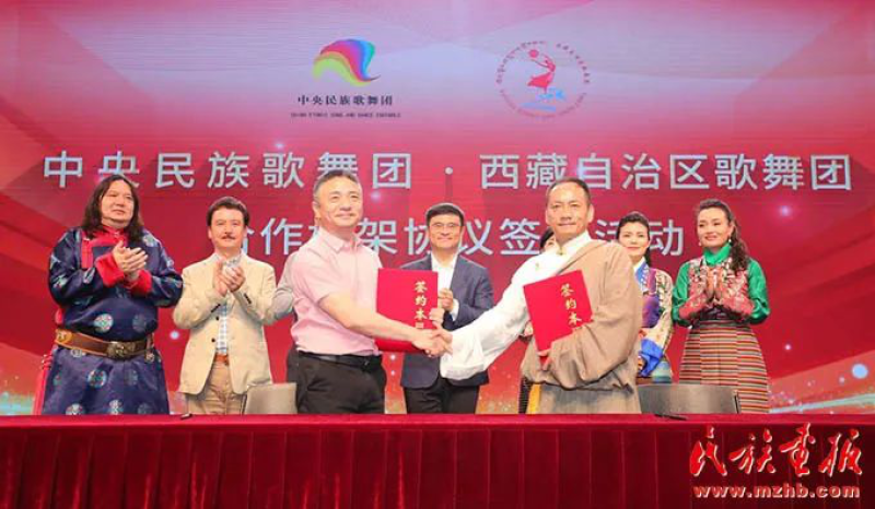2023年5月25日,中央民族歌舞团与西藏自治区歌舞团在民族剧院签署合作框架协议。根据合作协议,双方将在艺术创作、人才培养、演出推广、艺术培训、文化艺术交流等方面展开深度合作,共同推进新时代民族文艺发展。