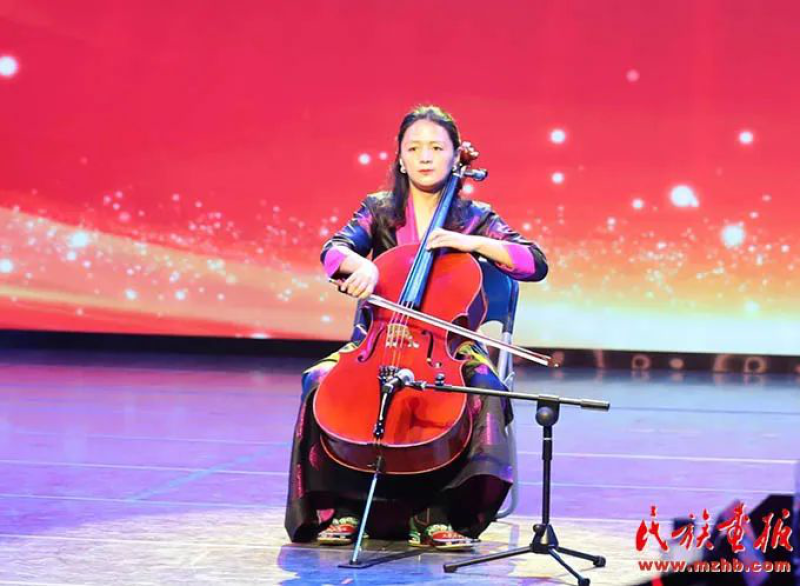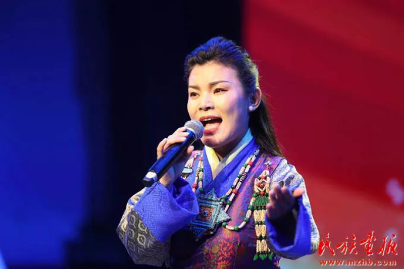 签约仪式后开展了艺术交流,双方艺术家们表演了独唱、重唱、独奏、独舞等精彩节目。德吉卓嘎向每位艺术家送上哈达,表达对中央民族歌舞团的深情祝福。