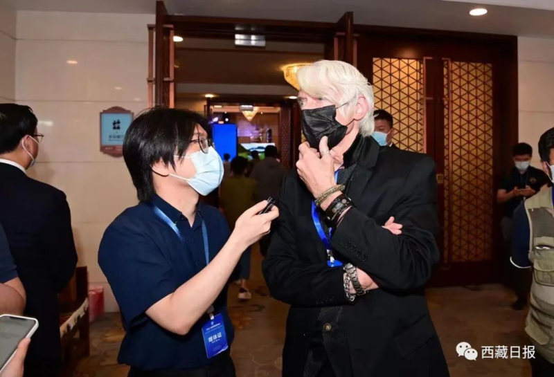 图为外国专家接受区外媒体采访。记者 旦增西旦 摄