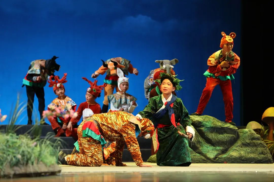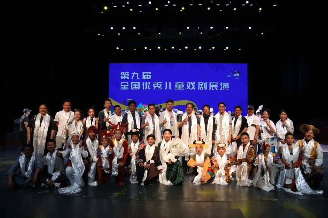 6月5日的南充大剧院里,童声嘹亮、清脆悦耳的藏戏唱腔,灵动活泼的藏戏身段,在藏戏鼓钹雄厚震撼的鼓点韵律伴奏下,来自西藏的藏戏小演员们为现场观众精彩演绎了一出高水准的古老藏戏故事。这出由西藏自治区藏剧团打造的少儿舞台剧藏戏《顿月顿珠》精彩片段与深圳市龙华青年京剧院打造的现代戏曲儿童剧《哪吒闹海新传》、马鞍山四季戏曲剧院打造的黄梅戏儿童剧《彩虹森林》、南宁市民族文化艺术研究院和广西艺术学校打造的邕剧《骄傲的画眉鸟》作为第九届全国优秀儿童剧展演的一组组台剧目接续上演,娇俏可爱的孩子们刻画出一个个鲜活的舞台形象,精彩的演出感染着现场每一位观众,使大家沉浸式体验了一次儿童戏剧盛宴,现场欢笑不断,掌声连连。