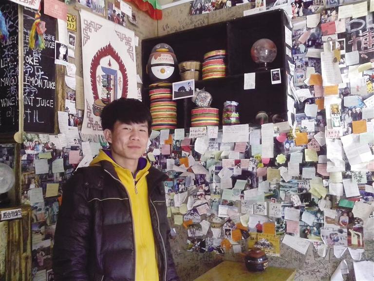 抵达拉萨后,段新华开始在某知名旅行网站搜索游玩攻略,“前栈牦牛酸奶坊”榜上有名。于是,他赶紧约着同住青旅的小伙伴一同前往打卡。刚进门,他就被贴在墙上的火车票、明信片、便利贴“震惊”了:还可以这样玩儿?