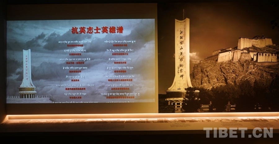 图为“宗山号角——纪念西藏江孜抗英保卫战120周年主题展”中滚动播放抗英志士英雄谱 摄影:王茜