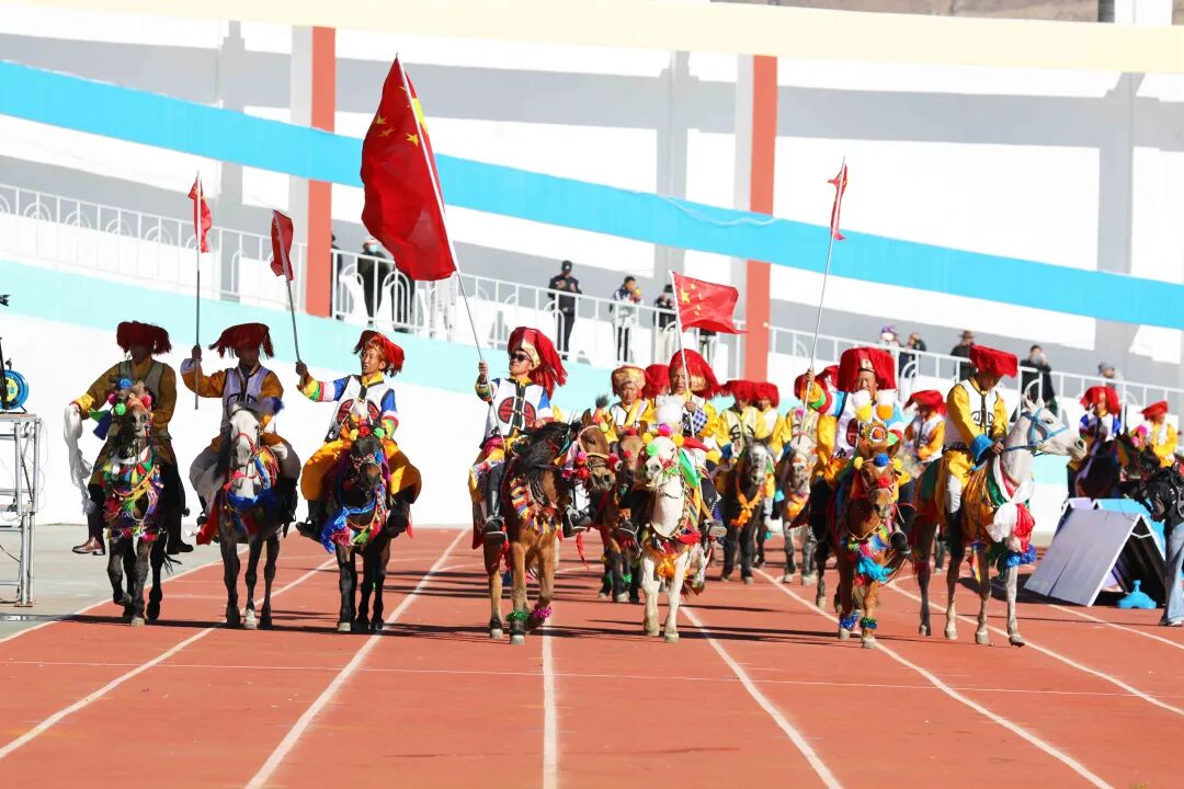 开幕式伊始,便是庄重而有序的入场仪式。旗手们身姿挺拔,迈着铿锵有力的步伐,护送着鲜艳的五星红旗率先入场。紧接着,裁判方队和14支参赛代表队运动员以饱满的精神依次有序入场。随后,英姿飒爽的马队奔腾而来,马蹄声声,仿佛奏响了比赛的激昂序曲。