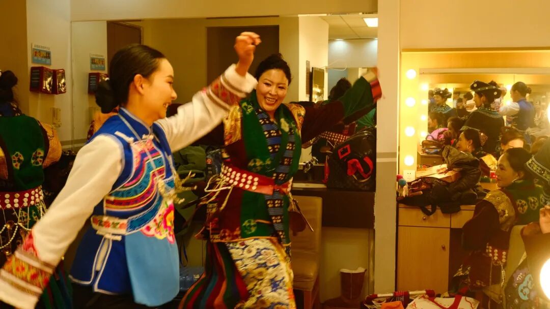 候场期间的后台化妆间,还上演了一场跨民族的文艺邂逅。西藏代表队与云南少数民族代表即兴开展“斗舞”互动,成为活动中的别样风景。双方舞者踏着随性欢快的节拍,轮番展示本民族特色舞蹈动作,时而舒展奔放、尽显豪迈,时而灵动俏皮、颇具韵味,精彩绝伦的即兴表演引得阵阵喝彩。在一来一往的互动中,大家相互学习、切磋技艺,让不同民族的舞蹈元素在交流碰撞中绽放光彩,生动诠释了各民族文艺交流的真挚与热烈。