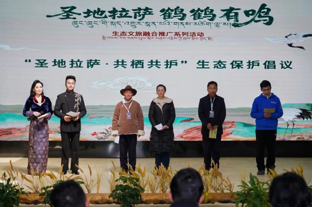 启动仪式上,拉萨市生态环境局、拉萨市林业和草原局、高原守鹤人旦增、美丽公约组织代表共同发起“圣地拉萨·共栖共护”生态保护倡议,呼吁全社会共同参与生态保护与可持续发展。