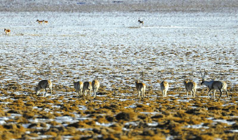 2021年1月13日,青藏高原自然保护区的珍稀动物藏羚羊。