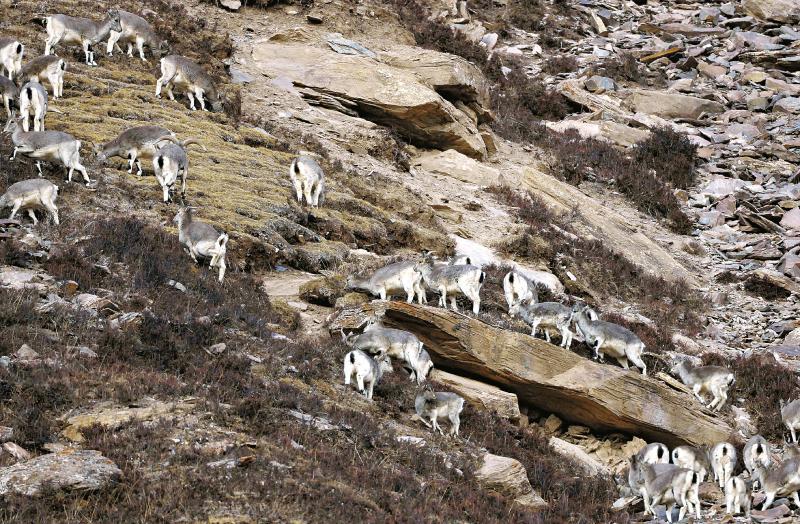 2021年1月9日,出没在青藏高原自然保护区的珍稀动物岩羊。
