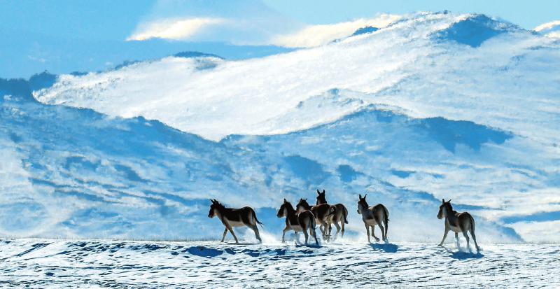 2021年1月13日,在青藏高原自然保护区的珍稀动物藏野驴。