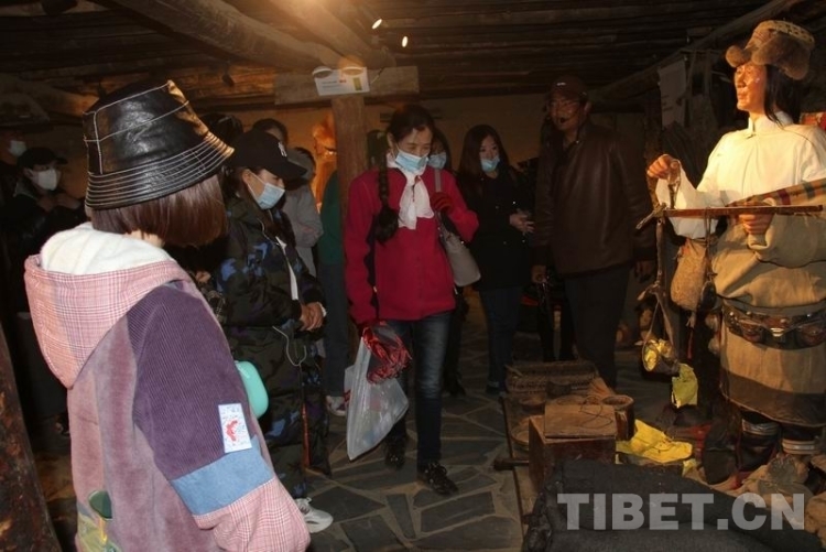 图为游客参观四川省甘孜藏族自治州理塘县“勒通古镇·千户藏寨”景区康巴人博物馆 摄影:叶强平