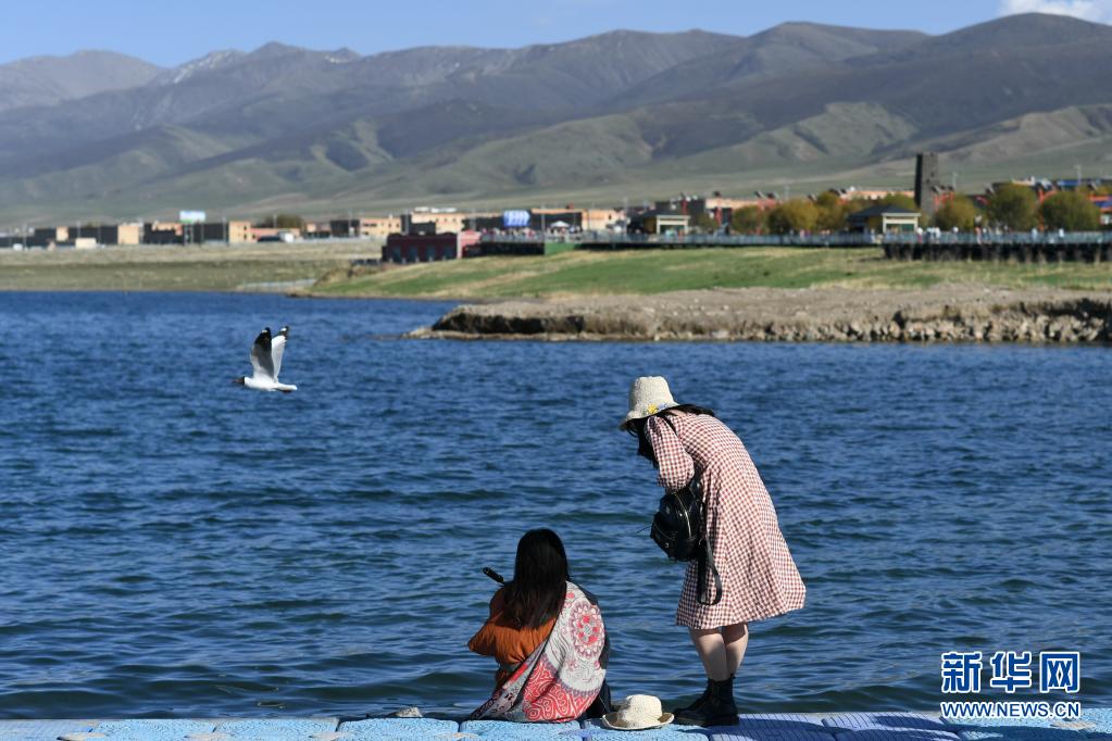 6月4日,游客在青海湖二郎剑景区内游玩。新华社记者 吴刚 摄