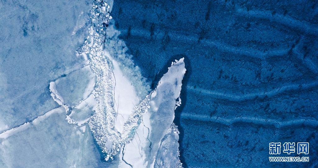 这是3月30日拍摄的青海湖开湖景观(无人机照片)。新华社记者 吴刚 摄