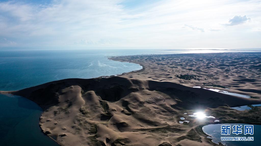 这是2020年7月28日拍摄的青海湖沙岛一隅(无人机照片)。新华社记者 吴刚 摄