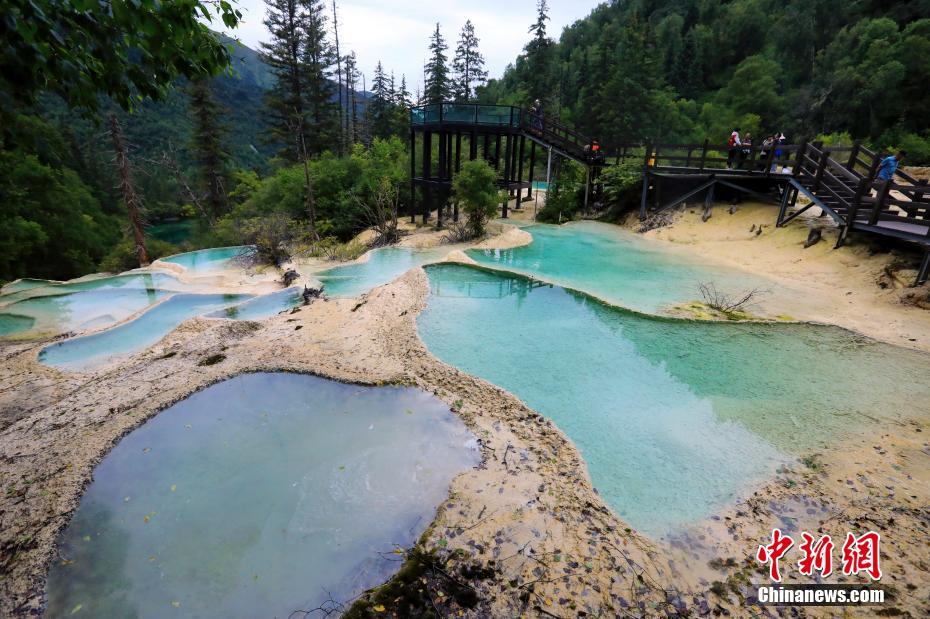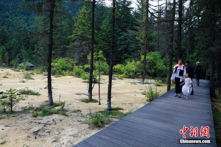 图为8月23日,游人在嫩恩桑措景区游览。中新社记者 王磊 摄