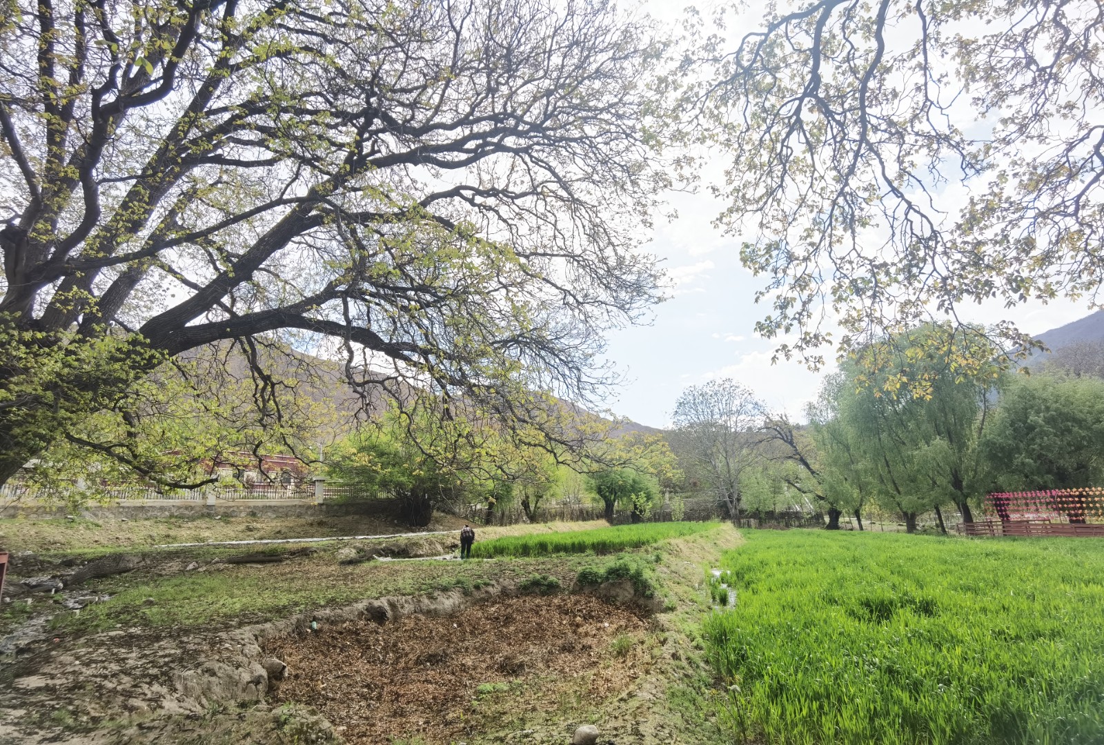春到高原,万物复苏。在林芝市朗县冲康村,千年核桃林中的200余株核桃树抽出新绿,构成了一道靓丽的风景线。