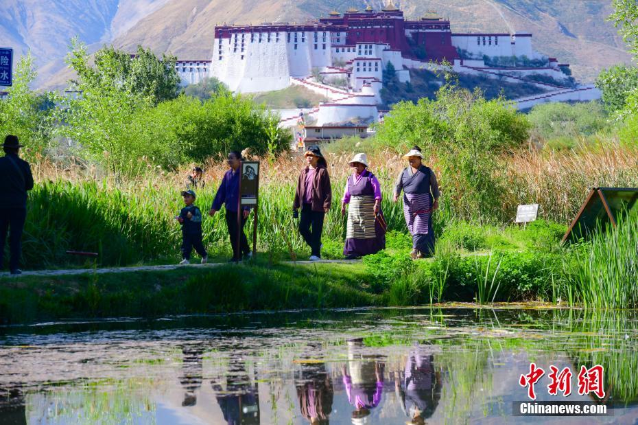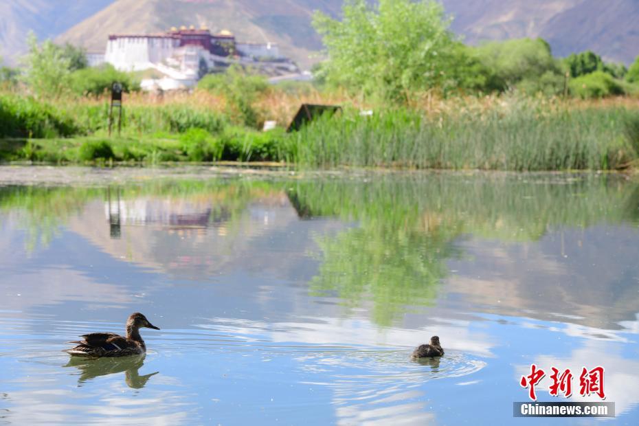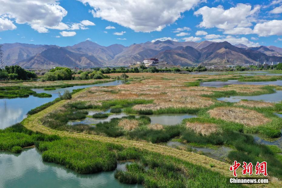 5月24日,从拉鲁湿地远眺布达拉宫。拉鲁湿地国家级自然保护区位于西藏拉萨市北郊,被誉为“拉萨之肺”。 中新社记者 贡嘎来松 摄