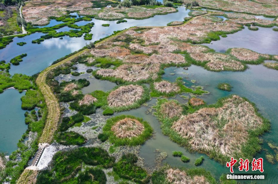 5月24日,空中鸟瞰初夏时节的拉鲁湿地。拉鲁湿地国家级自然保护区位于西藏拉萨市北郊,被誉为“拉萨之肺”。(无人机照片) 中新社记者 贡嘎来松 摄