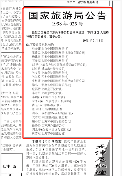 众所周知,在此之前,我国1998年评选出一批特级导游,此后中断了20余年,这次是经过漫长等待后的重启。在新一批特级导游产生之际,本报记者重访老一辈特级导游中的11位导游,以及特级导游评定工作的主要推动者,倾听他们对重启特级导游评定的看法、对导游职业发展的期待。