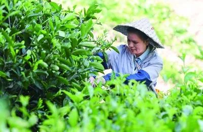 海南五指山毛纳村茶农在茶园采茶。新华社发