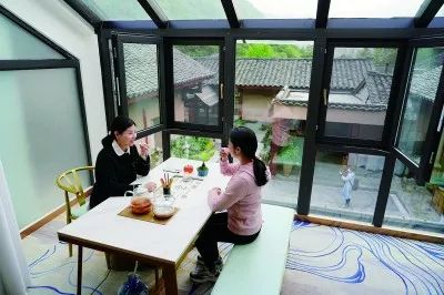 游客在陕西佛坪县西岔河镇银厂沟村一家民宿内休息。新华社发