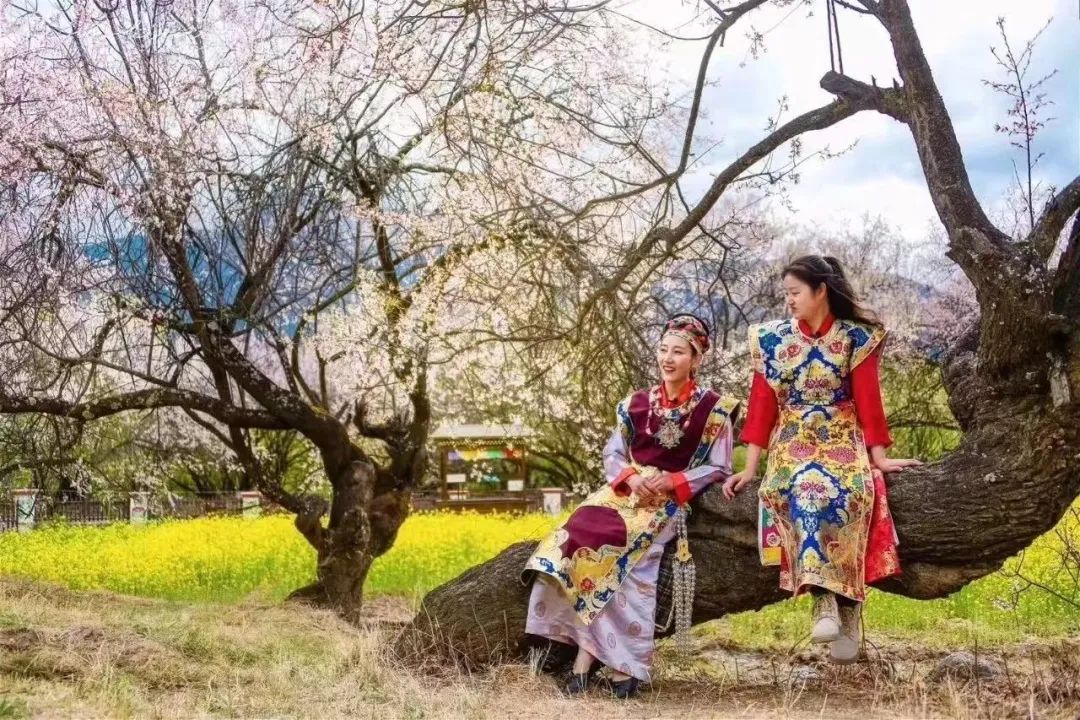 这片桃林中有一个宁静古朴的村庄嘎拉村