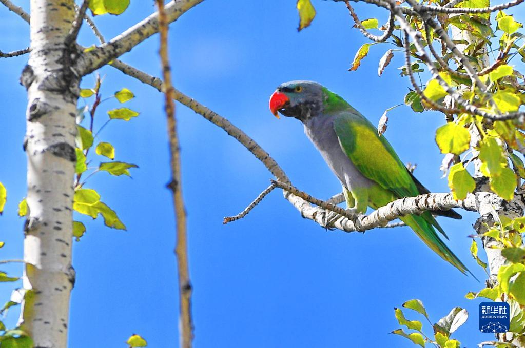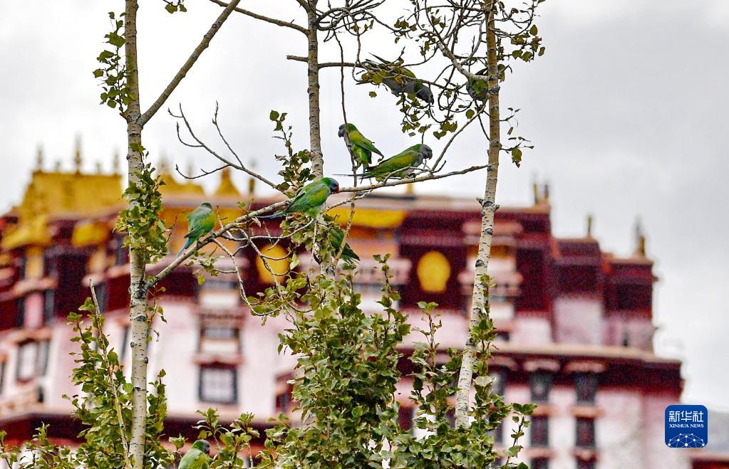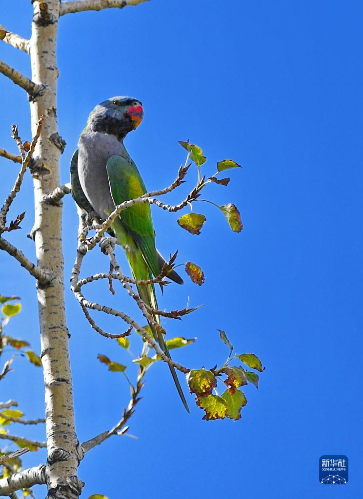 在拉萨市,大紫胸鹦鹉在树上栖息(10月9日摄)。新华社记者 张汝锋 摄