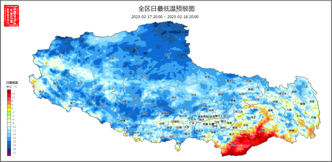 今日夜间:那曲中东部、拉萨、林芝、昌都和山南南部少云间多云,个别地方阴天有阵雪(雨);其他地区晴间少云。