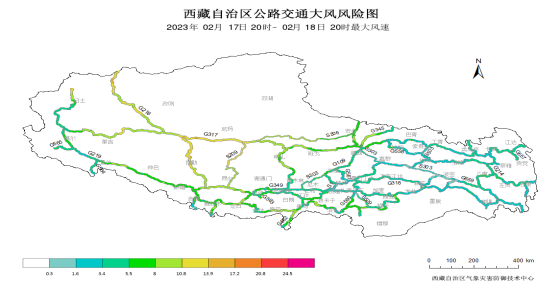 未来24小时, 我区大部国道沿线天气以少云天气为主,总体条件有利于交通出行。藏北一带和南部高海拔路段有7级左右大风,易出现扬沙天气,影响道路能见度,提请过往司乘人员谨慎驾驶,注意交通安全。
