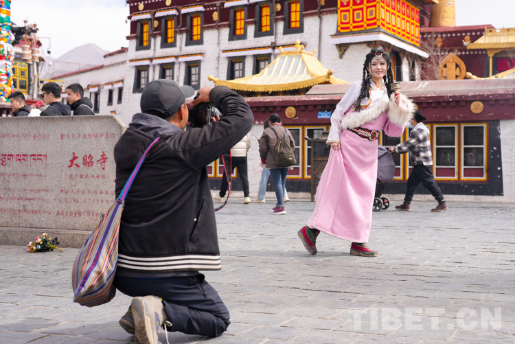 图为2023年2月“冬游西藏”活动期间在大昭寺广场前打卡的游客 摄影:赵振宇