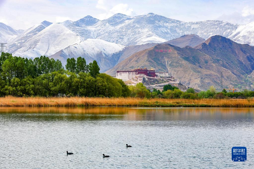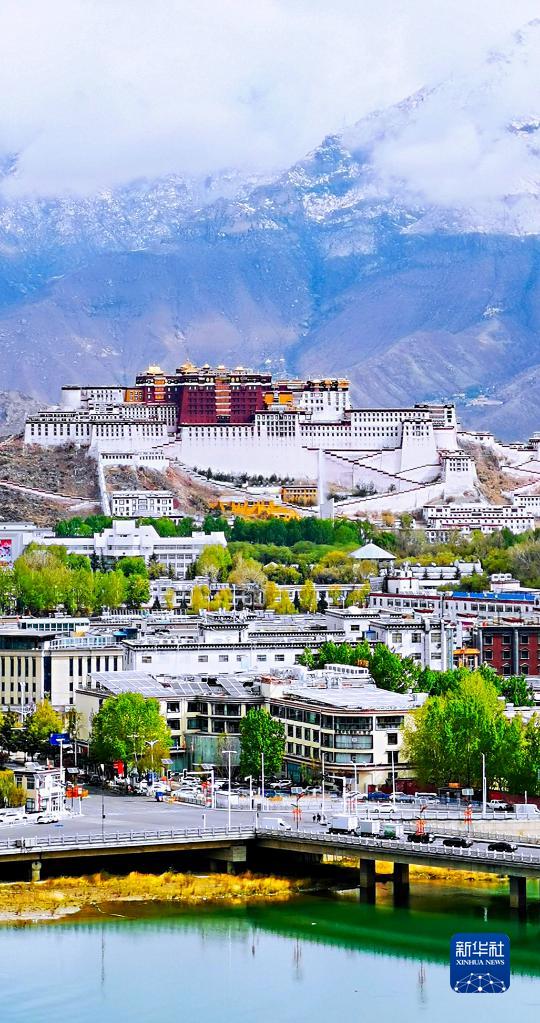 这是在拉鲁湿地拍摄的拉萨风光,葱茏的树木点缀在城市中,与山色相映成趣(5月12日摄)。新华社记者 姜帆 摄