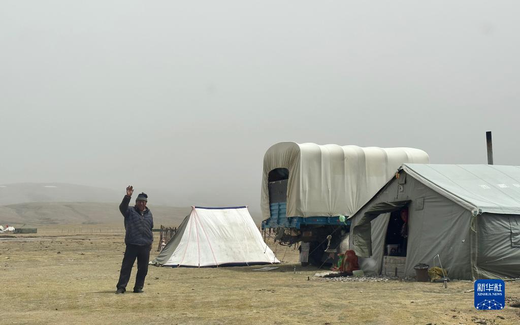 “国道之行 从雪山奔向大海”报道组沿着219国道继续向南,进入仲巴县境内,随后,记者离开国道,拐入一条由碎石铺成的简易道路。继续行驶近百公里后,草原上出现了数顶帐篷——这是一个牧民的放牧点。