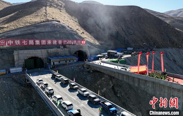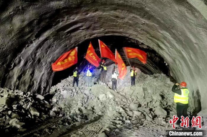 图为12月5日,普巴隧道左洞贯通。标志着拉日高速公路工程主体全线贯通,为该工程明年6月底建成通车奠定坚实基础。西藏自治区交通运输厅供图