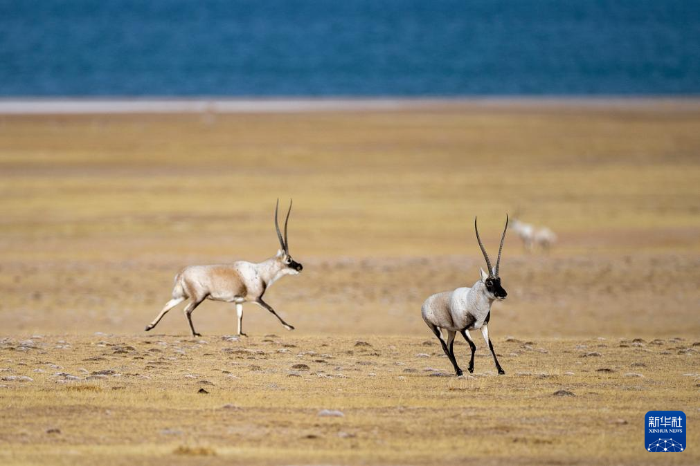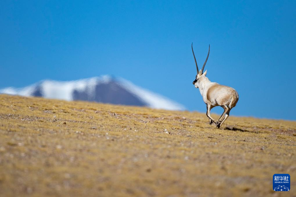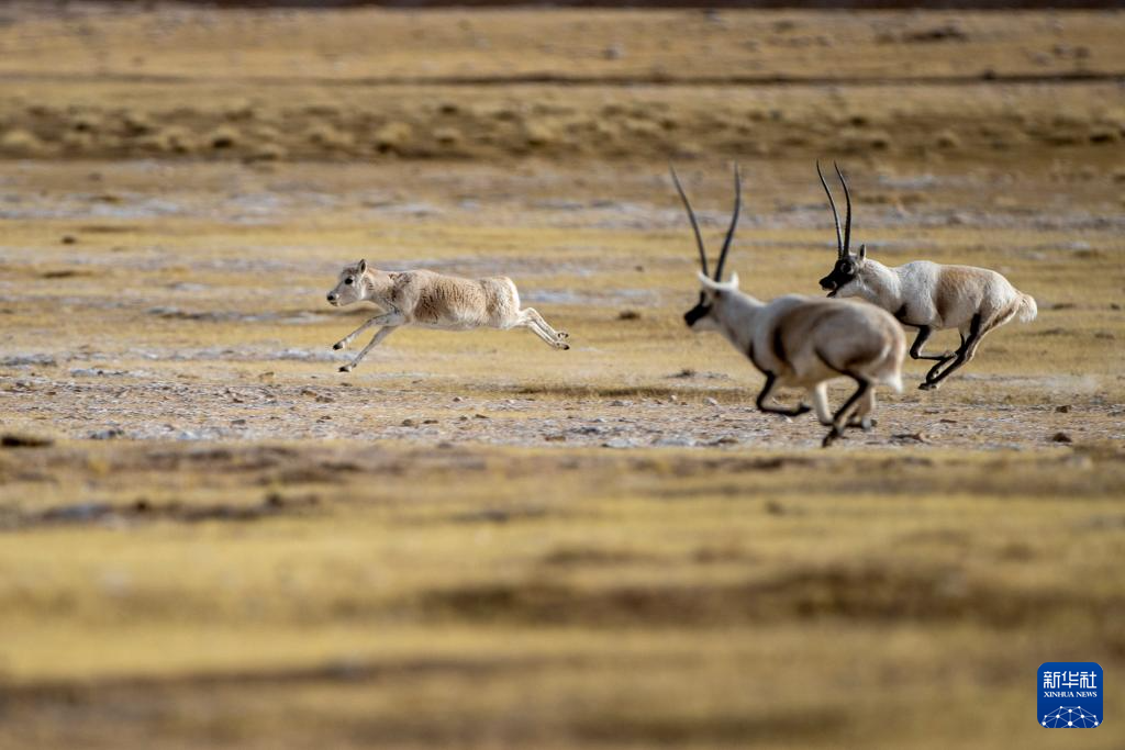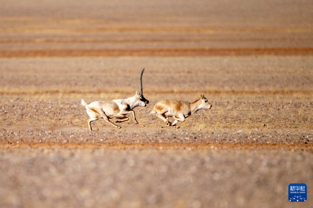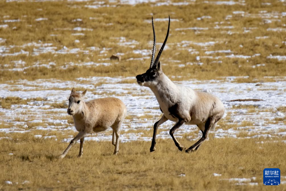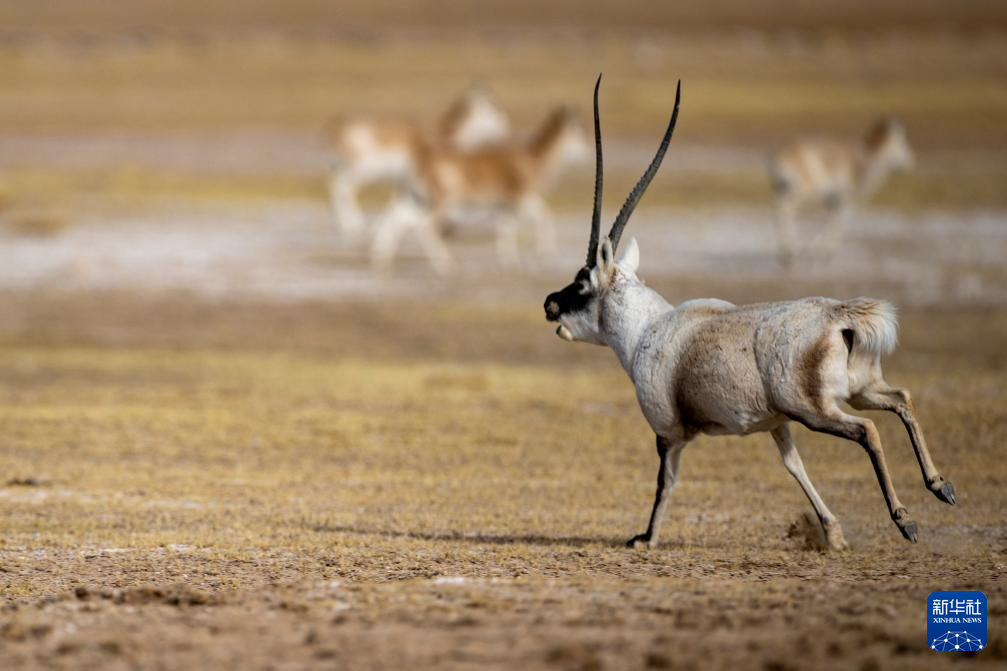 在羌塘国家级自然保护区,一只雄性藏羚羊在奔向雌性(12月16日摄)。新华社记者 姜帆 摄