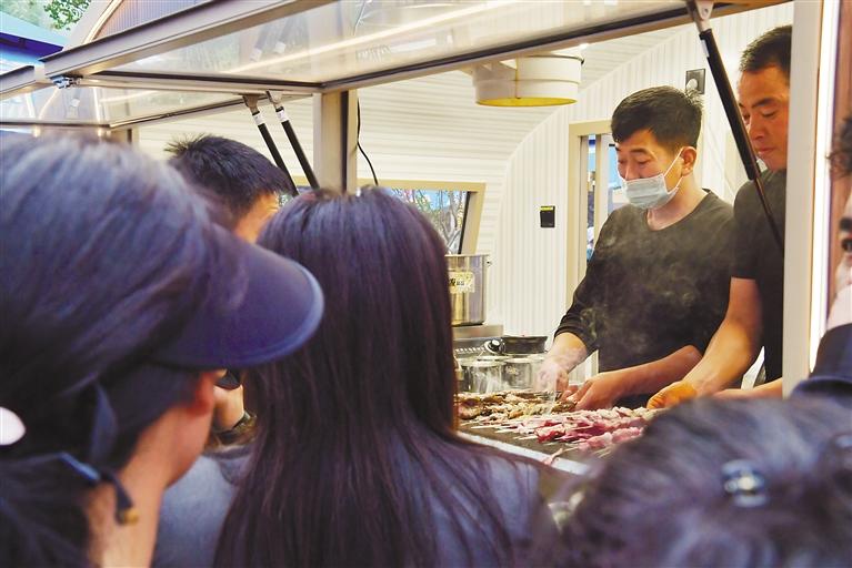 图为小吃摊贩正在制作餐食。记者 索朗旺久 摄