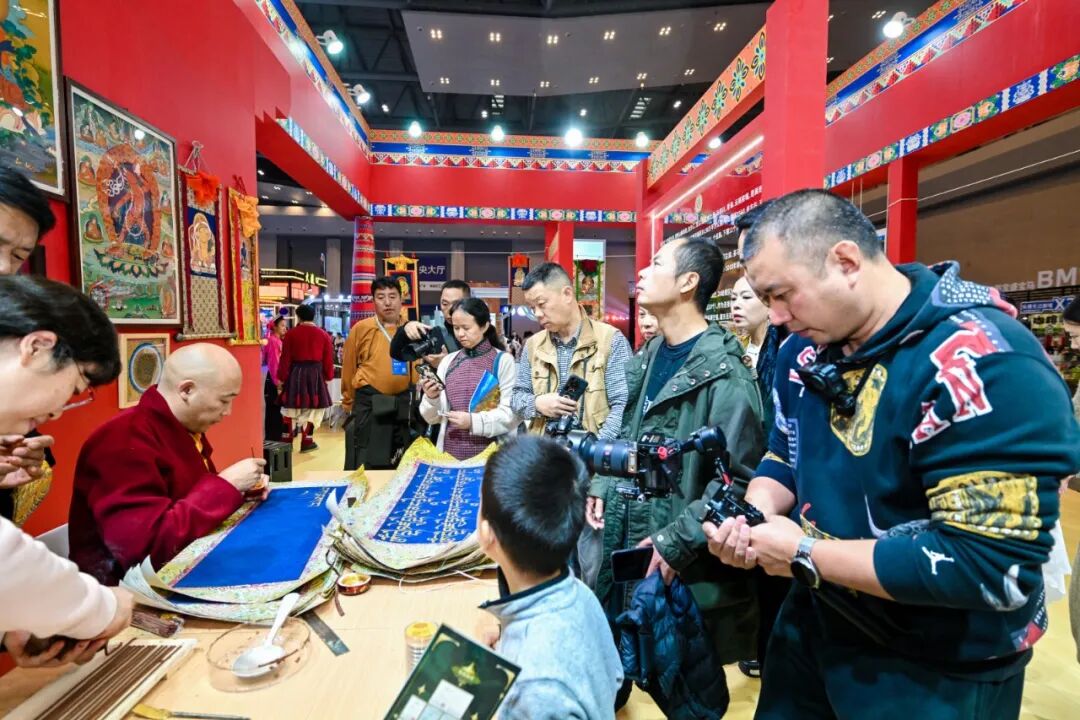 场馆外,热情奔放的康巴歌舞洋溢着浓郁的民族风情,而当你走进场馆内部,可以近距离体验藏香制作和飘逸灵动的藏文书法。唐卡漆画、民族手工饰品等藏东文化和虫草、贝母、藏红花等特色产品琳琅满目,更有边坝三色湖、贡觉拉妥湿地、丁青天穹孜珠寺、芒康千年盐田、洛隆俄西杏花等雪域美景,进馆咨询互动的企业、嘉宾络绎不绝。