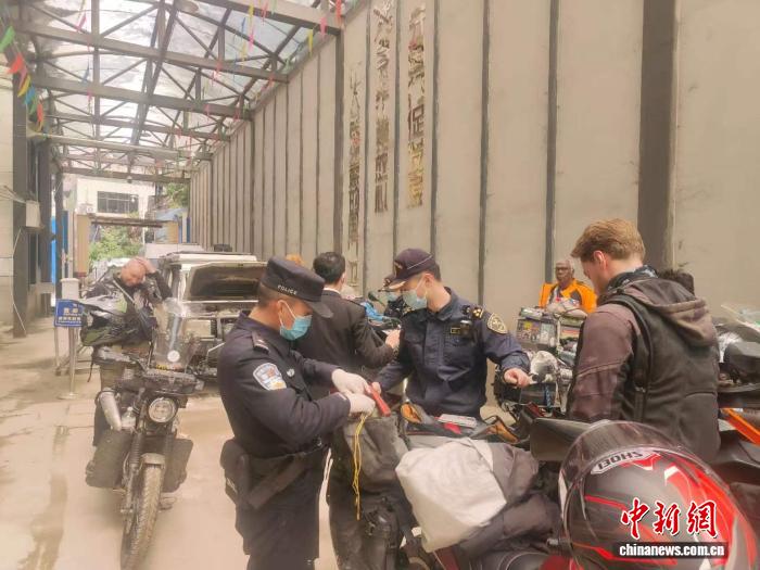 聂拉木出入境边防检查站联合聂拉木海关集中查验入境自驾游外国旅行团。聂拉木出入境边防检查站供图