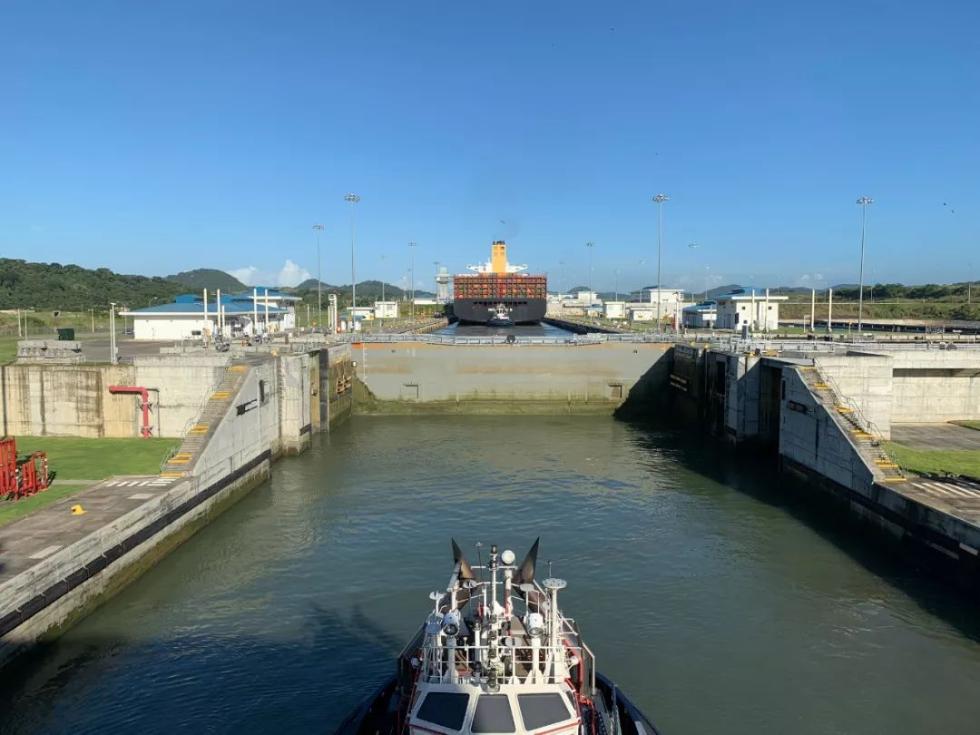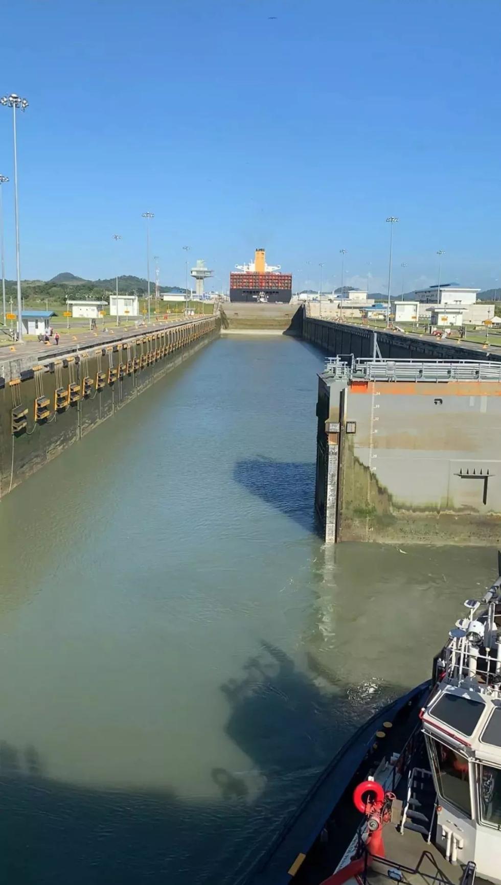 玫瑰轮于今年10月1日从中国青岛起航,横跨太平洋,通过巴拿马运河驶经大西洋抵达美国3个港口,现正通过巴拿马运河返航。(央视记者拍摄)