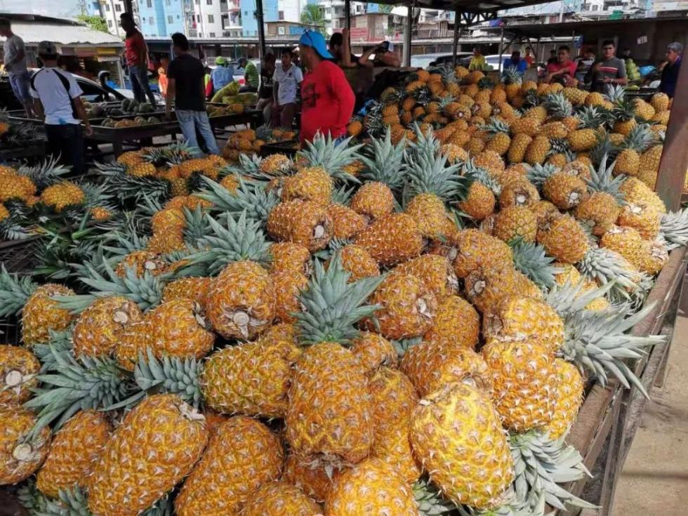 习近平在与巴雷拉总统会谈时说,欢迎巴拿马海产品、肉类、菠萝等对华出口。这是巴拿马盛产的菠萝。(央视记者拍摄)