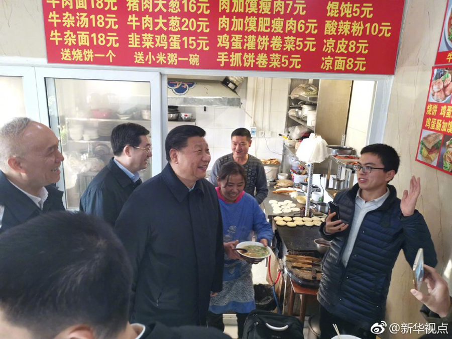 2月1日中午,习近平结束在北京市前门东区看望慰问乘车返回途中,特意走进位于前门石头胡同的快递服务点、小吃店,看望仍在工作的“快递小哥”等劳动者,了解他们工作和生活情况。
