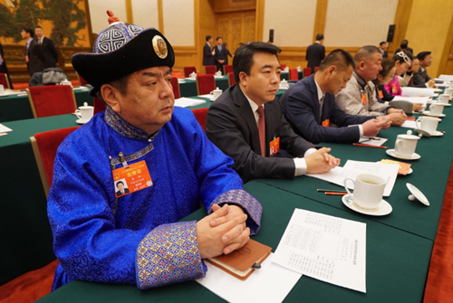 下午三点,内蒙古代表团全体会议开始。八位代表先后发言。