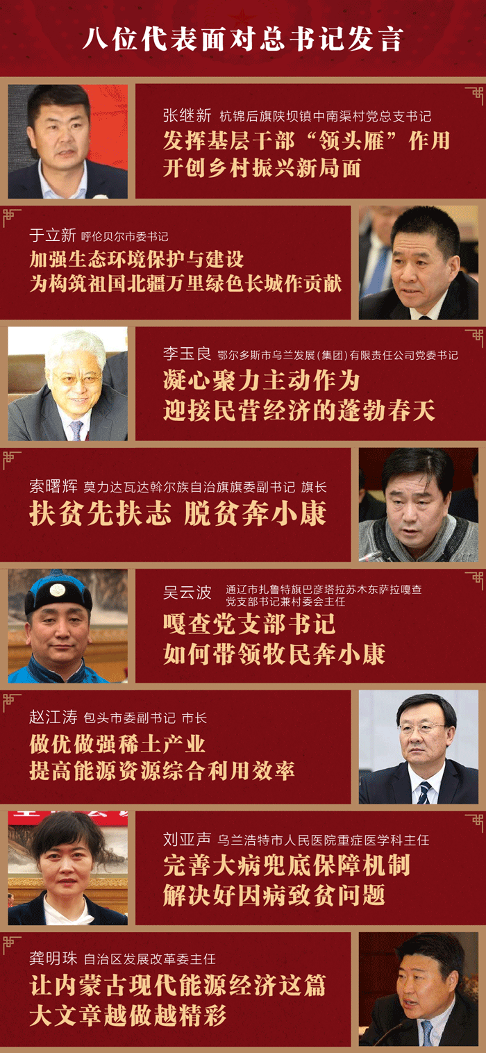 《时政新闻眼》发现,八位发言代表中没有省部级领导,而龚明珠代表是继去年之后第二次发言。龚明珠告诉记者,去年发言时,他是鄂尔多斯市市长,当时谈的是资源型地区新旧动能转换。这是个自选题目,最后脱颖而出。今年他的身份换成了自治区发改委主任,团里有一个关于现代能源经济发展的集体建议,由他出面发言更合适,因而再次获得机会。